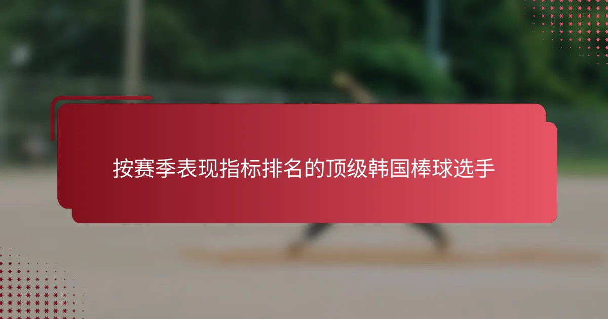 韩国棒球运动员的关键赛季表现指标是什么?